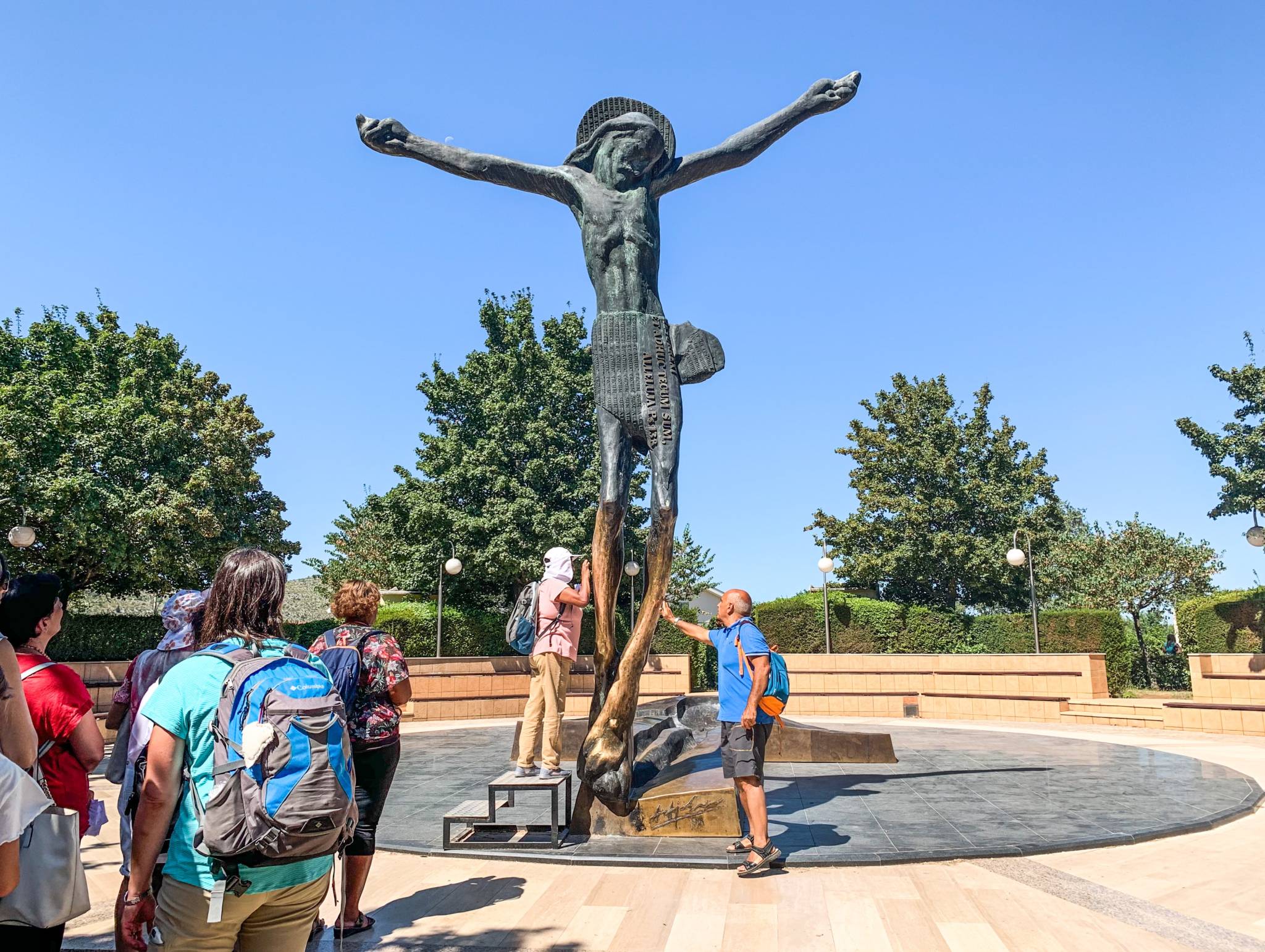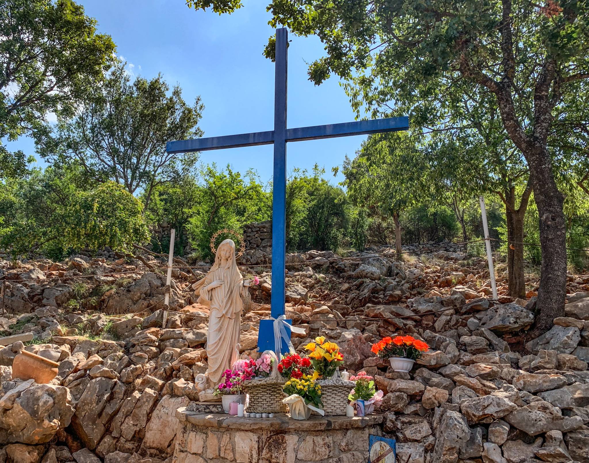 Al termine della salita si giunge allo spiazzale in cui si trova la statua della Regina della Pace e, poco lontano, un crocifisso. E’ esattamente in questo punto che avvenne la primissima apparizione.