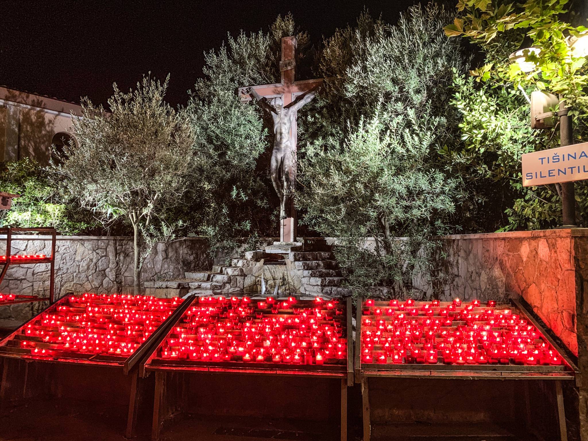 Con i suoi 520 metri di altezza, il Križevac è il monte più elevato di Medjugorie. Sulla sua cima si trova una grande croce bianca di cemento alta più di 8 metri. I parrocchiani la posero lì il 15 marzo 1934 a ricordo dei 1900 anni dalla morte di Gesù. Per l’occasione, Roma inviò a Medjugorie delle reliquie della vera croce di Cristo che furono poi inserite all’incrocio delle braccia.